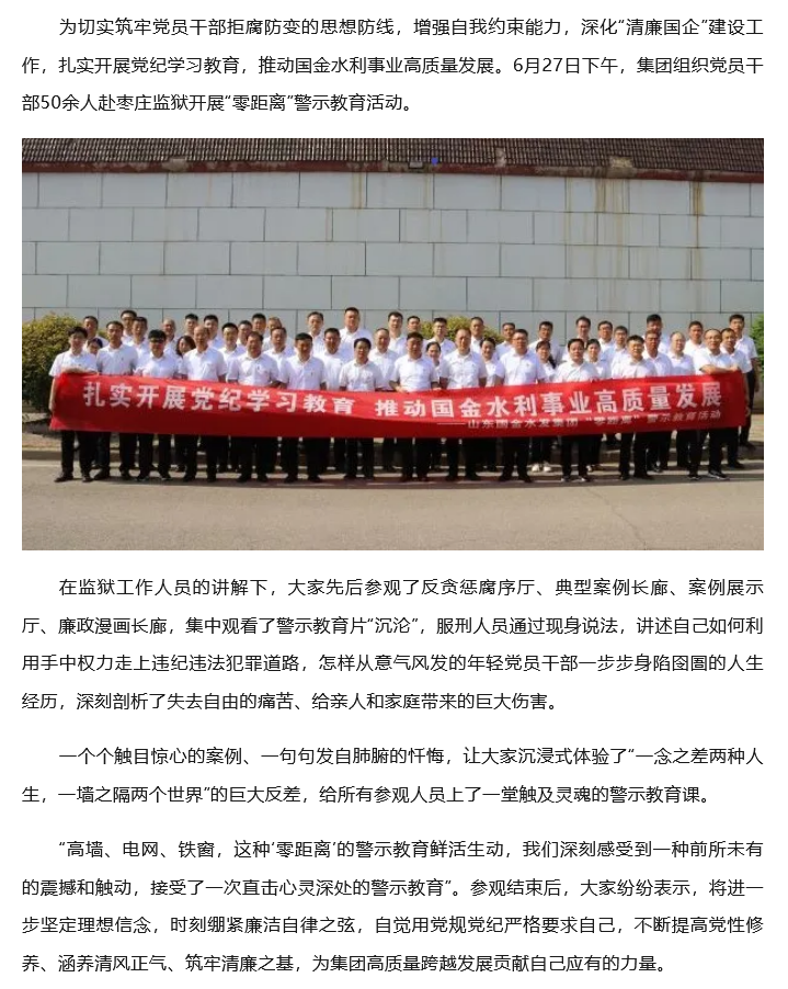 集团组织党员干部赴枣庄监狱开展“零����� �������Ƴ������������ �������Ƴ�������距离”警示教育活动