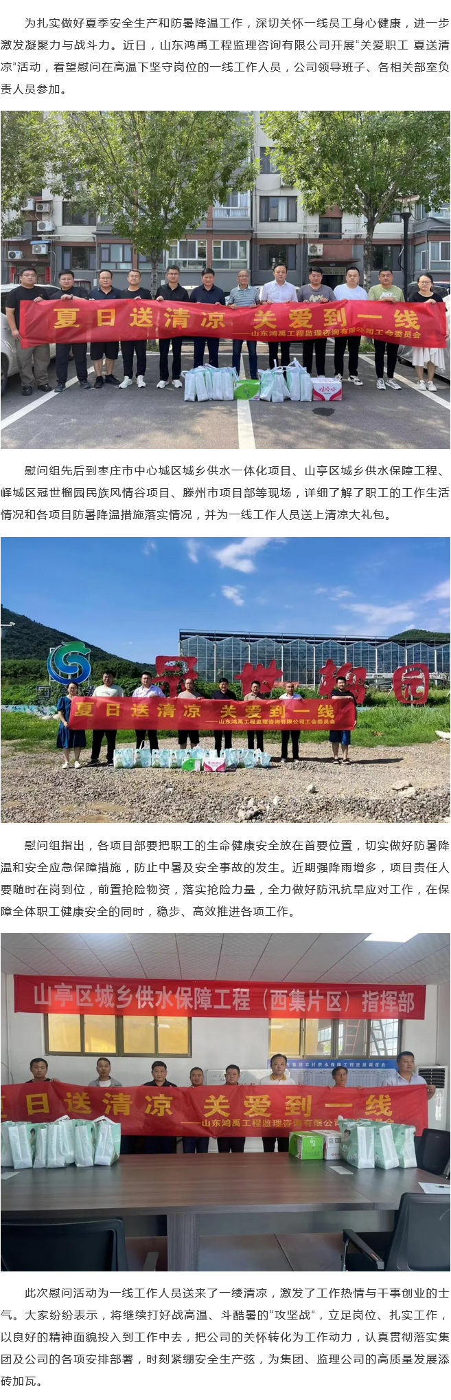 山东鸿禹工程监理咨询有限公司开展“关爱职工 夏����� �������Ƴ������������ �������Ƴ�������送清凉”慰问活动