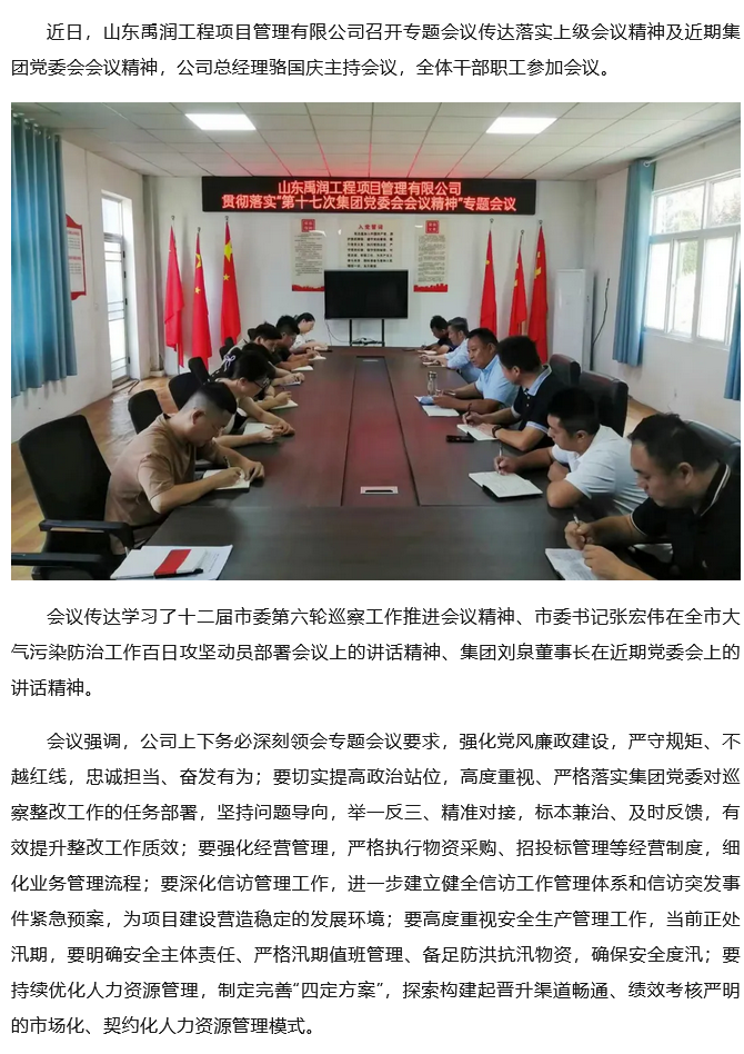 禹润公司召开专题会议传达落实上级会议精����� �������Ƴ����������� �������Ƴ�������神