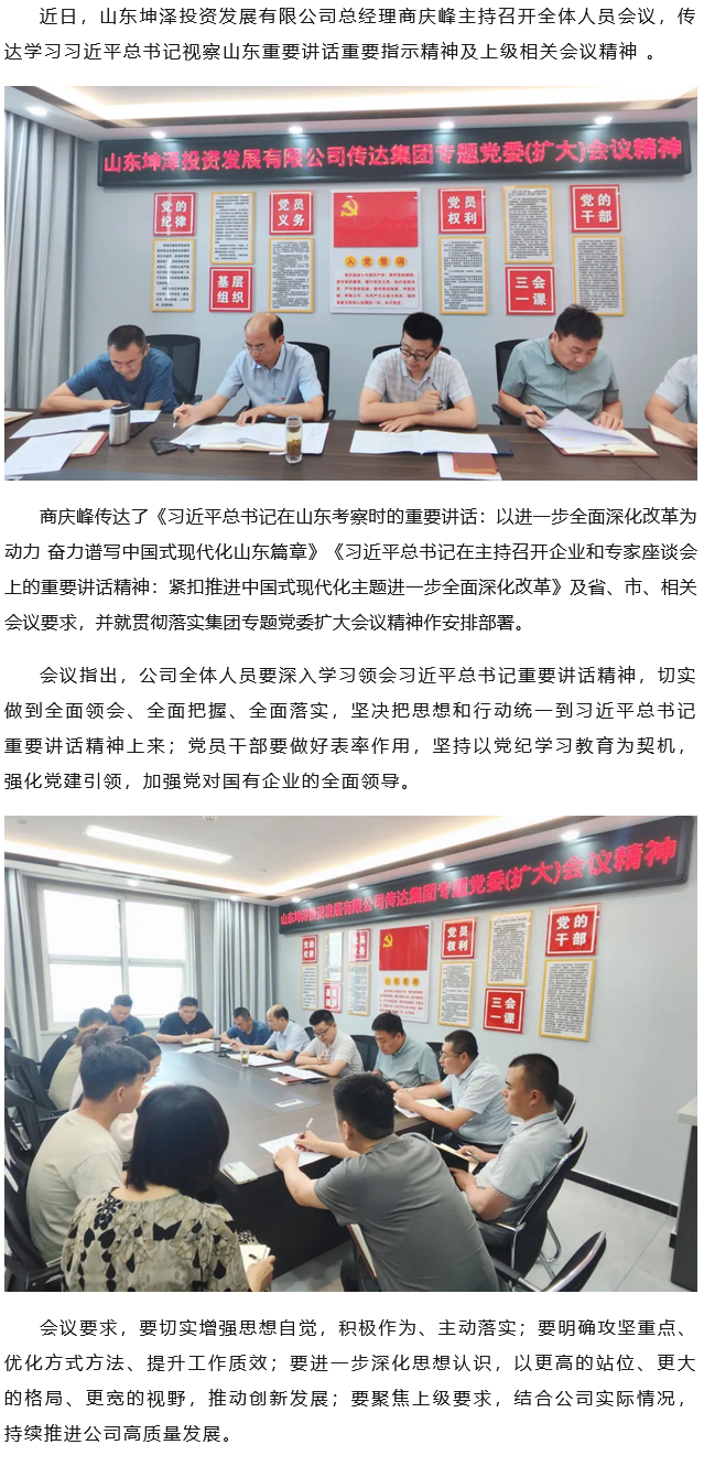 坤泽公司传达学习习近平总书记视察山����� �������Ƴ������������ �������Ƴ������������ �������Ƴ�������东重要讲话重要指示精神