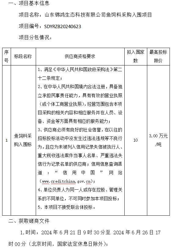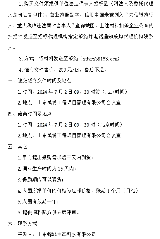 山东锦鸿生态科技有限公司鱼饲料采购入围项目竞争性����� �������Ƴ������������ �������Ƴ������������ �������Ƴ������������ �������Ƴ�������磋商公告
