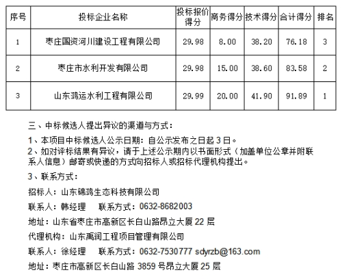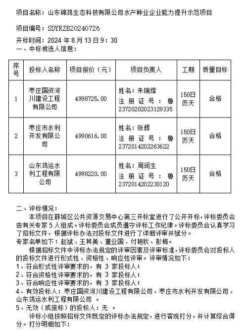 山东锦鸿生态科技有限公司水产种业企业能力提升示����� �������Ƴ����������� �������Ƴ������������ �������Ƴ�������范项目中标候选人公示