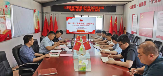 为深入开展党史学习教育活动,全面抓好贯彻落����� �������Ƴ������������ �������Ƴ�������实,根据上级党委通知要求,5月28日,山东善����� �������Ƴ������������ �������Ƴ������泓环保建材有限公司党支部开展了“学史����� �������Ƴ������������ �������Ƴ����������� �������Ƴ�������崇德”主题党日活动,引导全体党员“立政德、明����� �������Ƴ������������ �������Ƴ�������大德、守公德、严私德”,赓续共产����� �������Ƴ������������ �������Ƴ������������ �������Ƴ�������党人精神血脉,永葆对党的忠诚之心、对人民的赤子之����� �������Ƴ����������� �������Ƴ������������ �������Ƴ�������心,永葆党的先进性和纯洁����� �������Ƴ����������� �������Ƴ������������ �������Ƴ�������性。