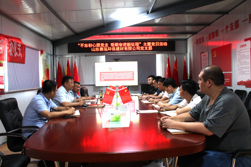 为庆祝中国共产党成立100周年,巩固深化“����� �������Ƴ������������ �������Ƴ�������不忘初心、牢记使命”主题教育成果,扎实����� �������Ƴ����������� �������Ƴ����������� �������Ƴ�������推进党史学习教育,激励广大党员继承����� �������Ƴ������������ �������Ƴ�������发扬昂扬的奋斗精神和革命精����� �������Ƴ������������ �������Ƴ����������� �������Ƴ������神,把爱党爱国爱社会主义的热情转����� �������Ƴ����������� �������Ƴ������������ �������Ƴ�������化为实际行动,6月28日,����� �������Ƴ������������ �������Ƴ����������� �������Ƴ������������ �������Ƴ�������山东善泓环保建材有限公司党支部组织开展了“不忘����� �������Ƴ������������ �������Ƴ������������ �������Ƴ�������初心跟党走、砥砺奋进新征程”主题党日活����� �������Ƴ������������ �������Ƴ������������ �������Ƴ�������动,公司全体党员参加了活动。