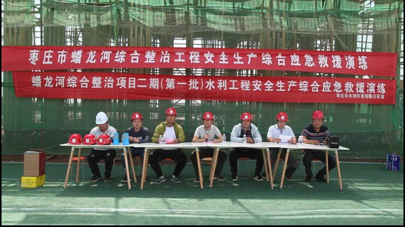 为进一步检验蟠龙河综合整治项����� �������Ƴ������������ �������Ƴ�������目中应急预案的可行性和可操����� �������Ƴ������������ �������Ƴ�������作性,同时起到锻炼队伍、磨����� �������Ƴ����������� �������Ƴ������������ �������Ƴ�������合机制及安全教育的目的。6月5日在山家林橡胶����� �������Ƴ����������� �������Ƴ�������坝管理房处,由枣庄坤泽置地开发有����� �������Ƴ������������ �������Ƴ�������限公司组织开展安全生产综合应急演练活动。山东鸿禹����� �������Ƴ������������ �������Ƴ�������工程监理咨询有限公司、青岛瑞源工程集团有限����� �������Ƴ������������ �������Ƴ����������� �������Ƴ������������ �������Ƴ�������公司、临沂市水利工程处、枣庄市水利开发有限公司项����� �������Ƴ������������ �������Ƴ�������目负责人及安全员共计46����� �������Ƴ������������ �������Ƴ������������ �������Ƴ������������ �������Ƴ�������人参加本次演练,邀请了枣庄����� �������Ƴ������������ �������Ƴ������������ �������Ƴ�������市蟠龙河建设管理服务中心人员进行观摩����� �������Ƴ������������ �������Ƴ������������ �������Ƴ����������� �������Ƴ�������。
